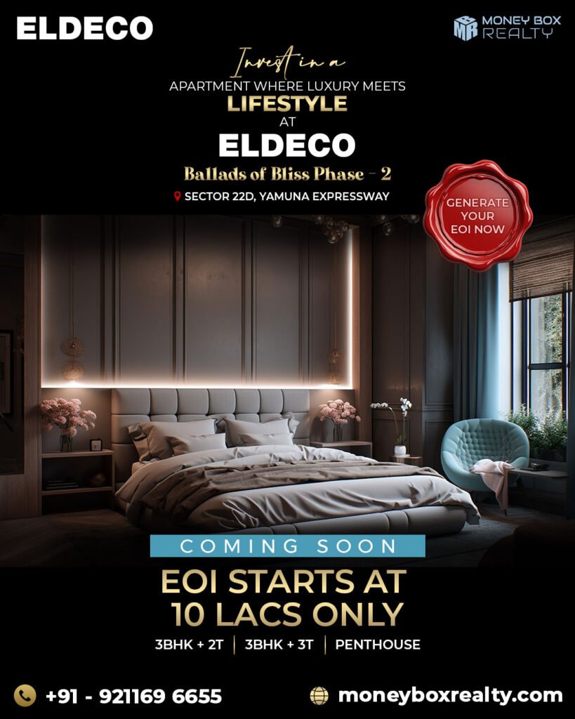 Sector 22D of Eldeco Yamuna Expressway puts you in the center of convenience and excitement in the bustling Greater Noida West neighborhood. Five opulent towers surrounded by stunning scenery invite you to experience the pinnacle of contemporary living. For your comfort, every apartment has all-weather air conditioning. Enter our ultra-luxurious three-bedroom premium apartments. You may reach the surrounding area with ease via the 130-meter Noida-Greater Noida Link Road. Enjoy the easy mobility within the neighborhood thanks to the handy internal road, which is 24 meters wide. Savor the sophistication of 9-foot main doors with digital locks, which will enhance your living space with a dash of style and security.